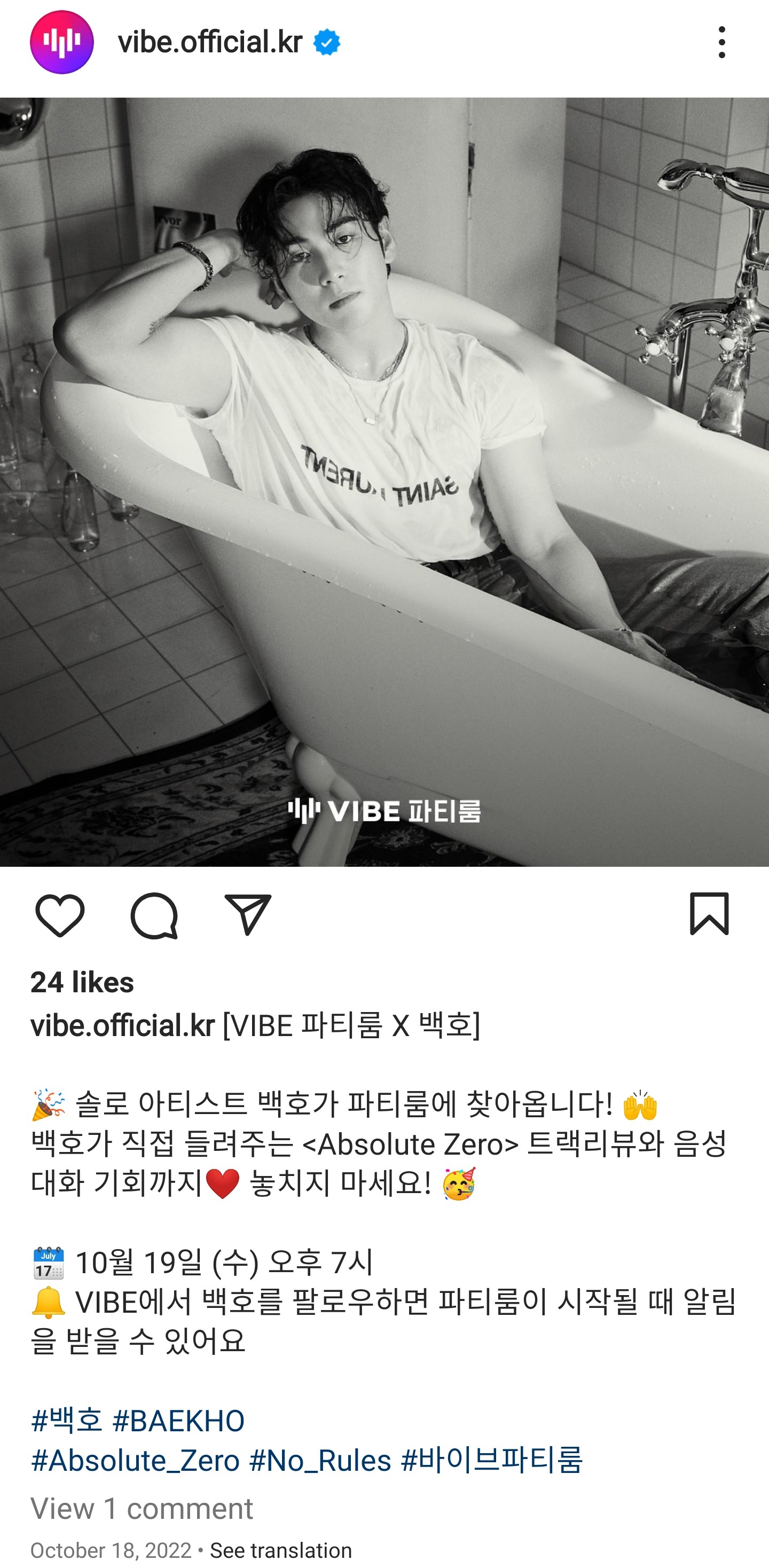 🔔 VIBE에서 백호를 팔로우하면 파티룸이 시작될 때 알림을 받을 수 있어요