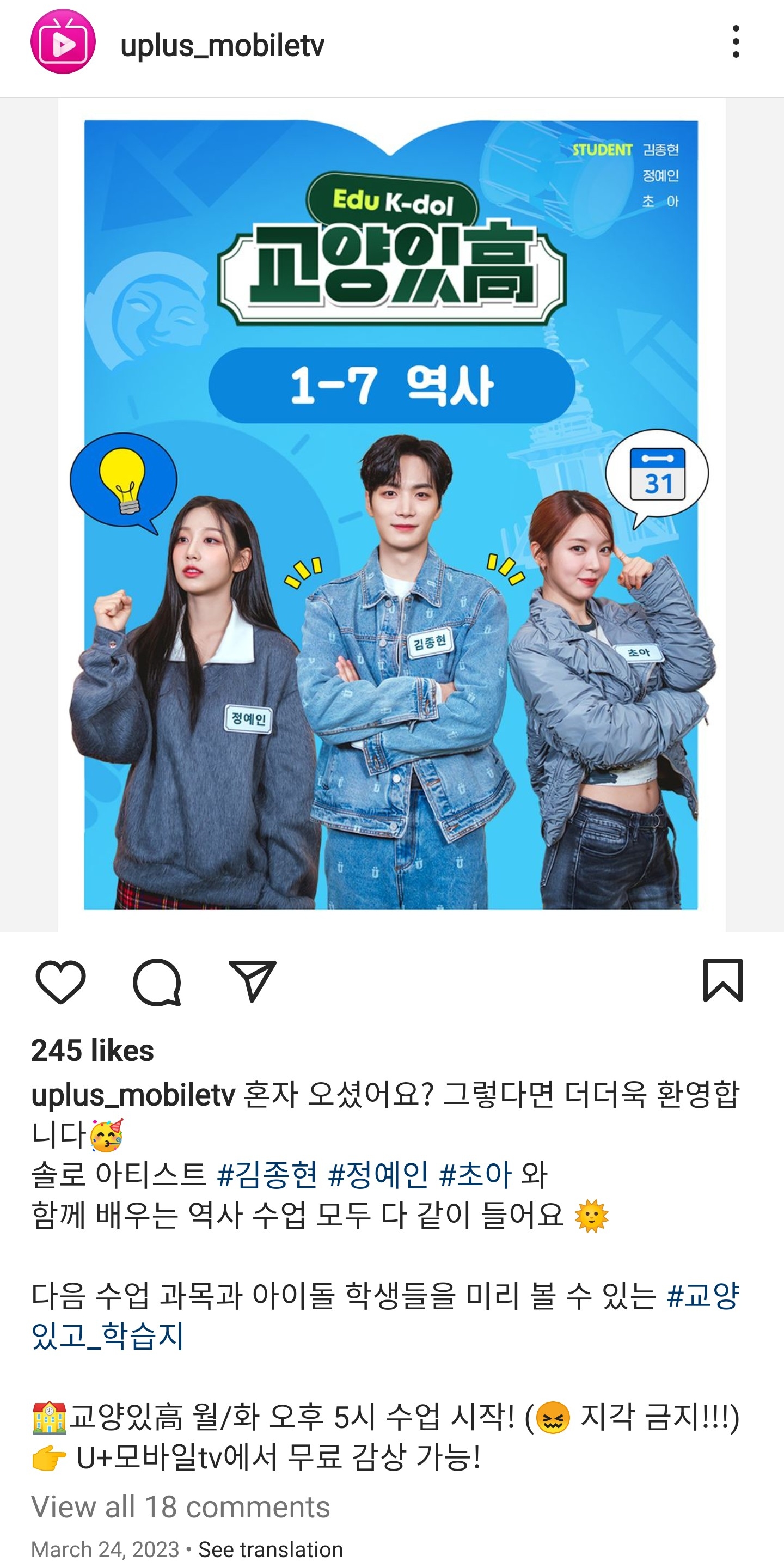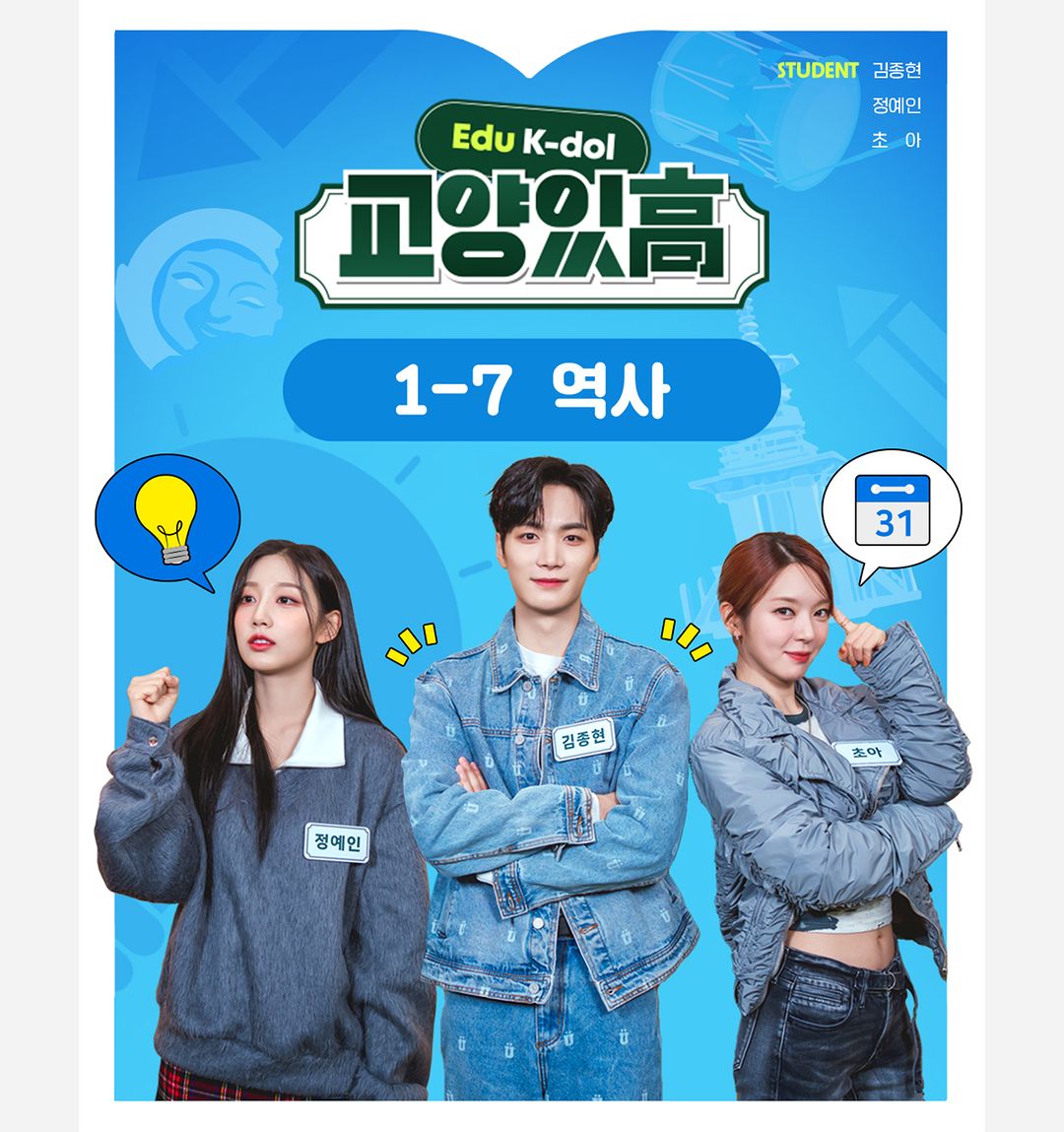 다음 수업 과목과 아이돌 학생들을 미리 볼 수 있는 #교양있고_학습지