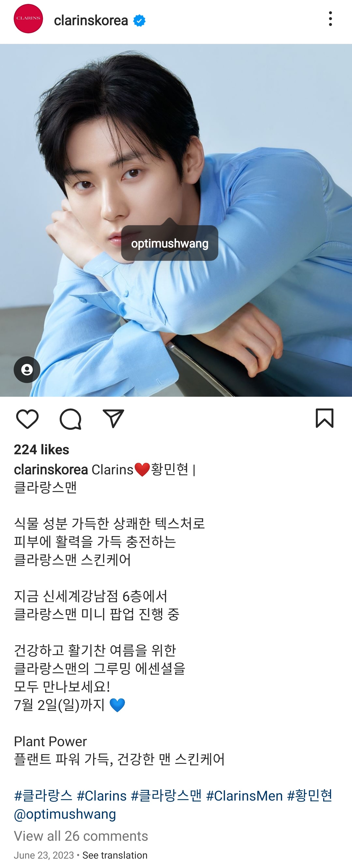 #클라랑스 #Clarins #클라랑스맨 #ClarinsMen #황민현 @optimushwang