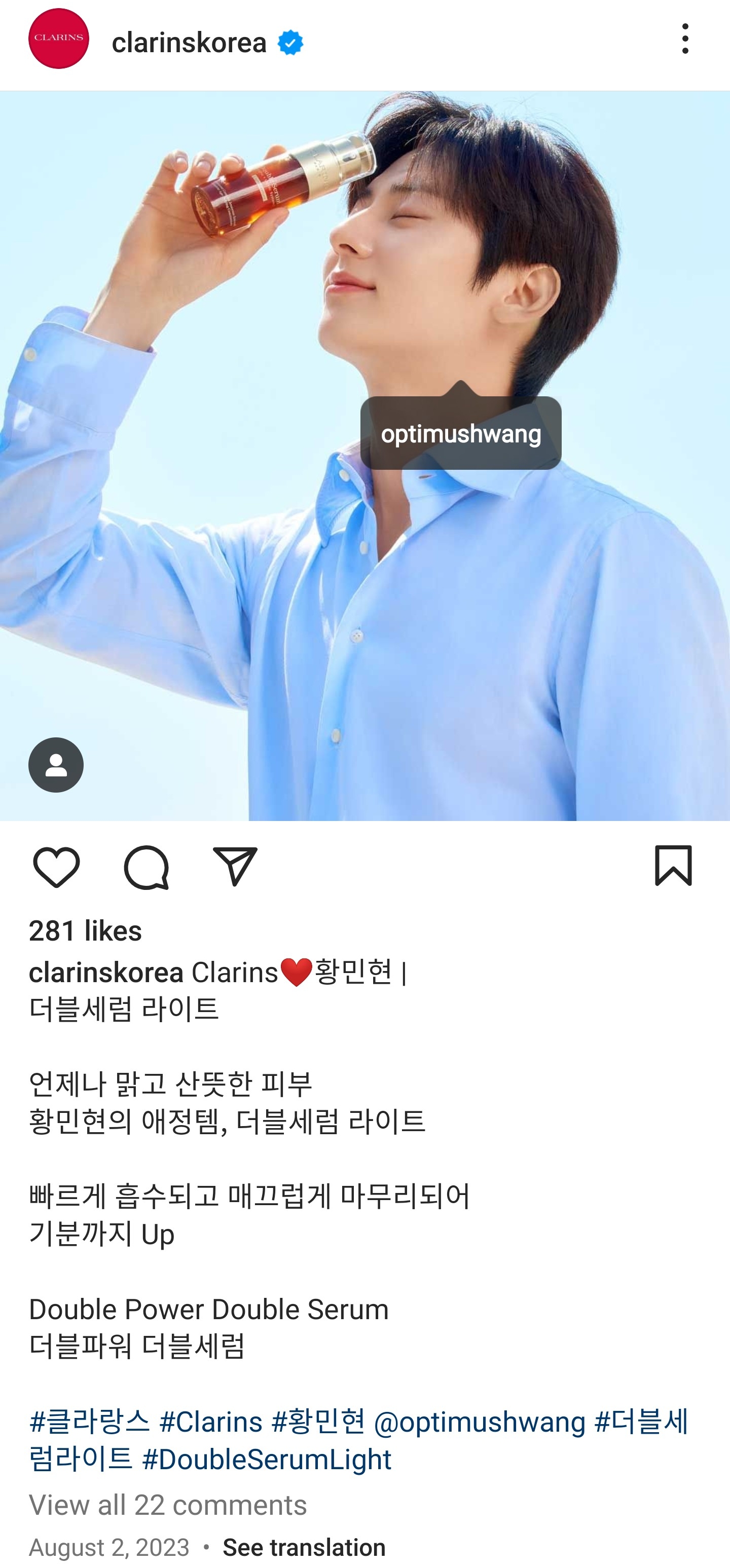 #클라랑스 #Clarins #황민현 @optimushwang #더블세럼라이트 #DoubleSerumLight
