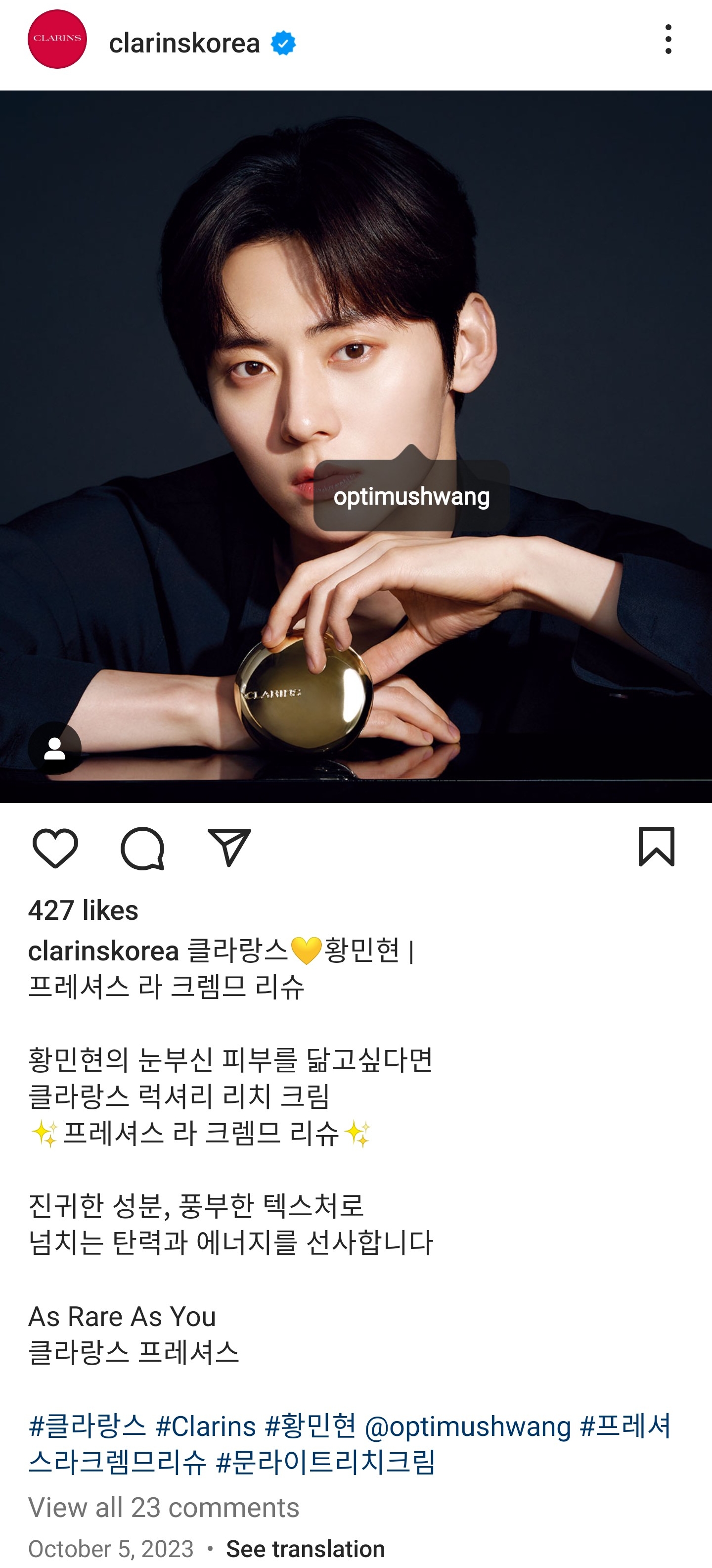 #ํด๋ผ๋์ค #Clarins #ํฉ๋ฏผํ @optimushwang #ํ๋ ์