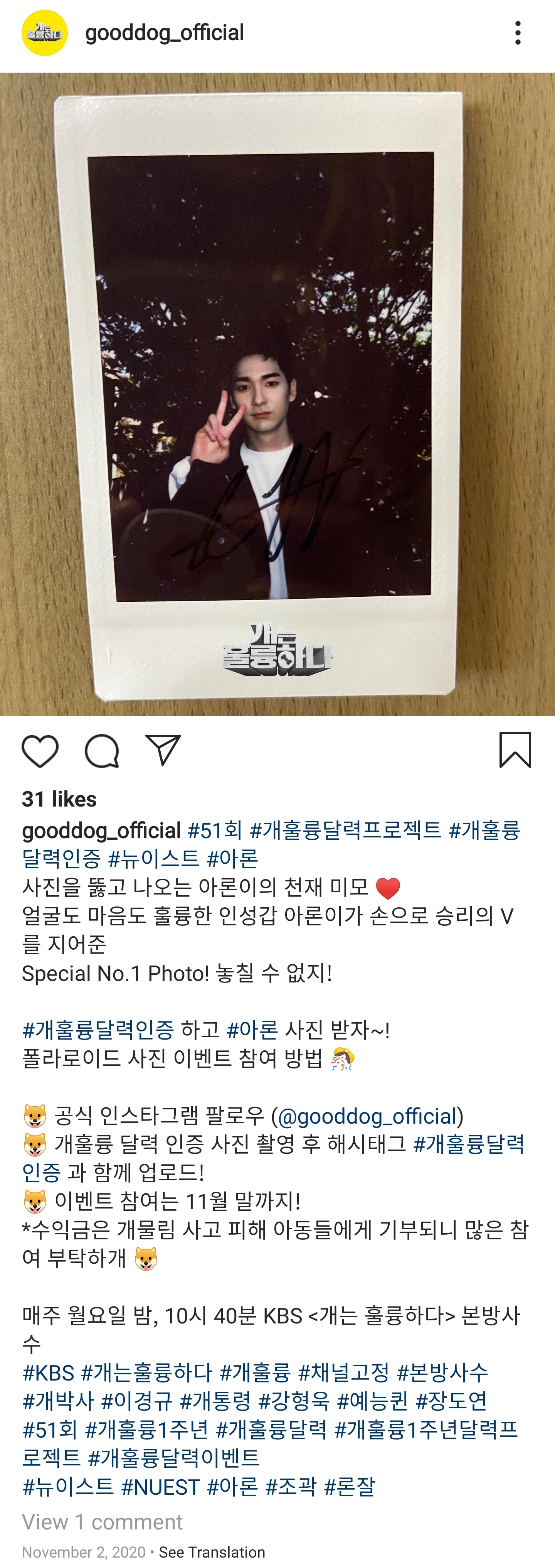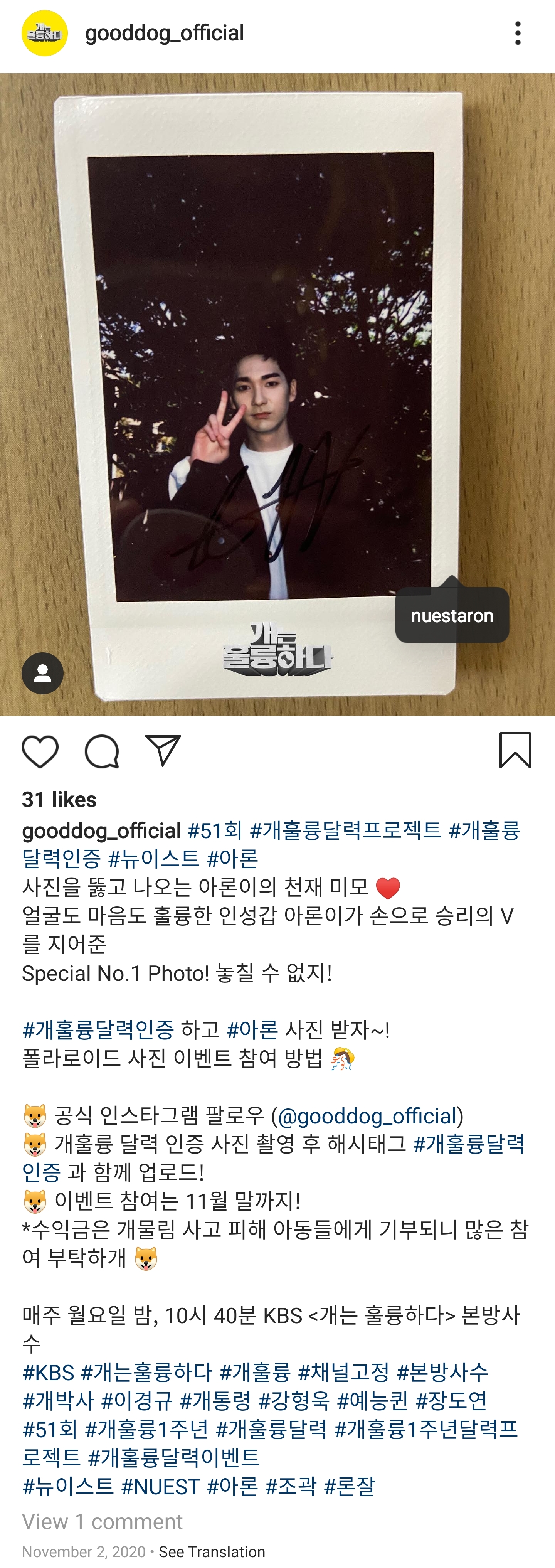 #개훌륭달력인증 하고 #아론 사진 받자~!